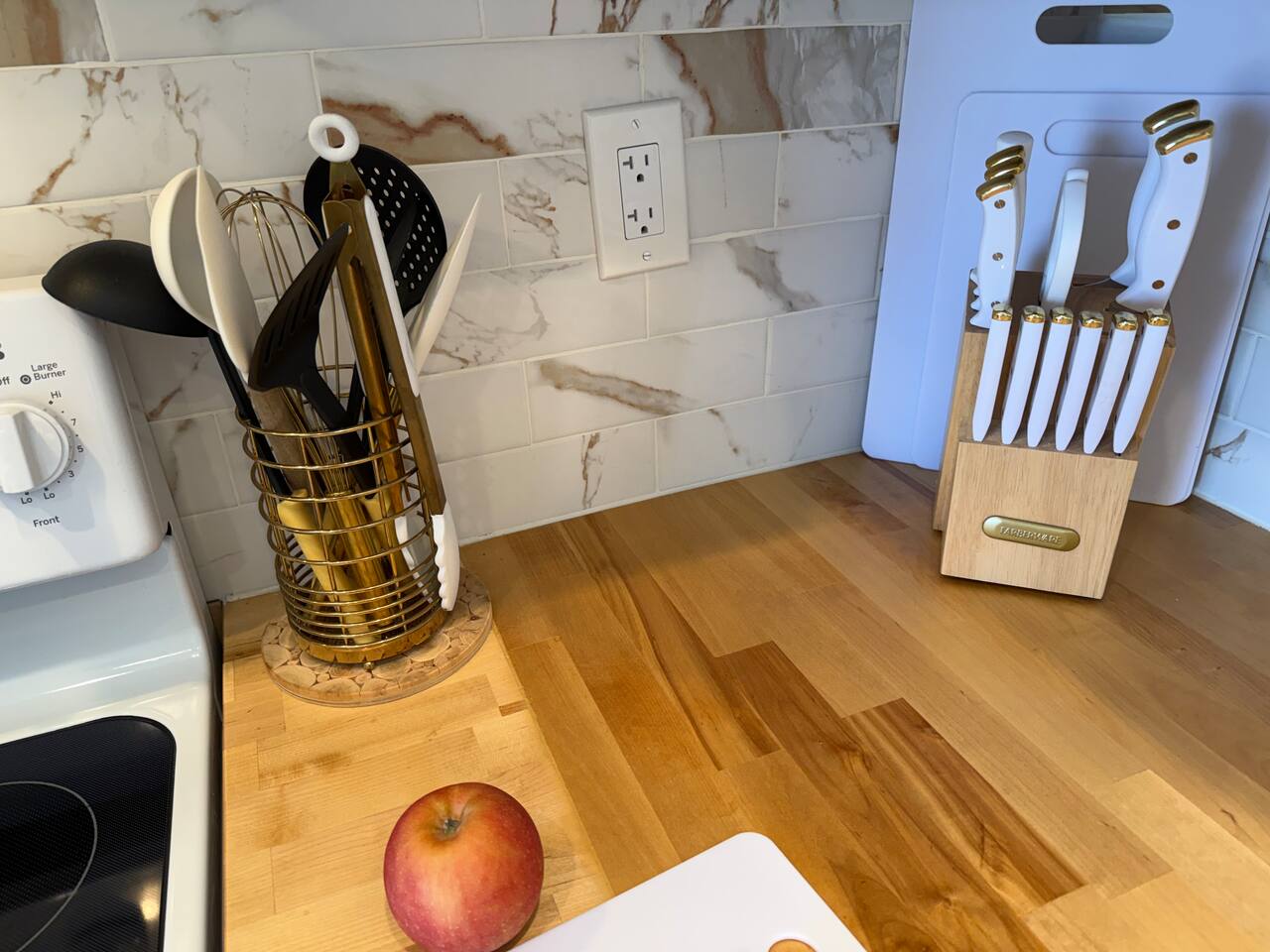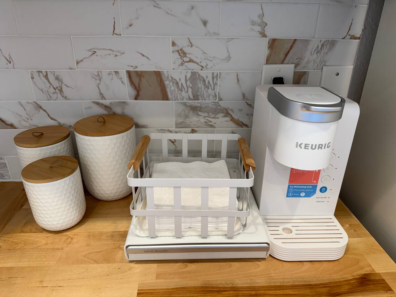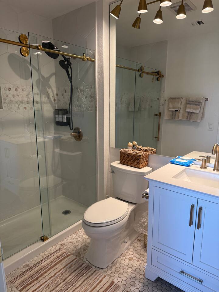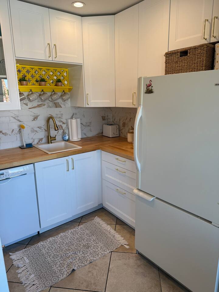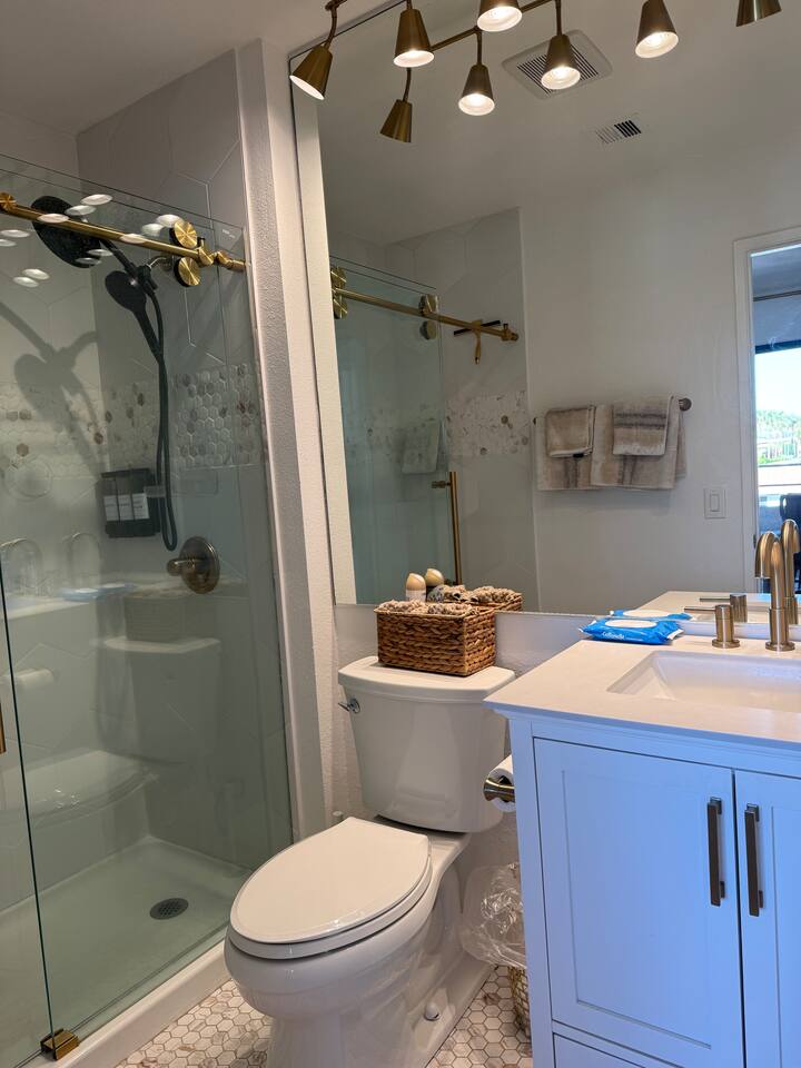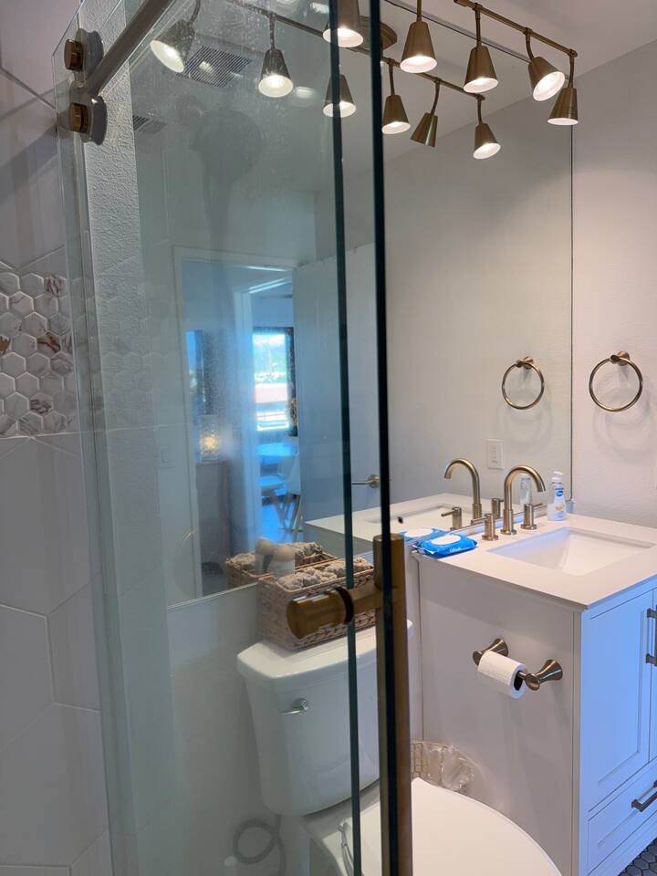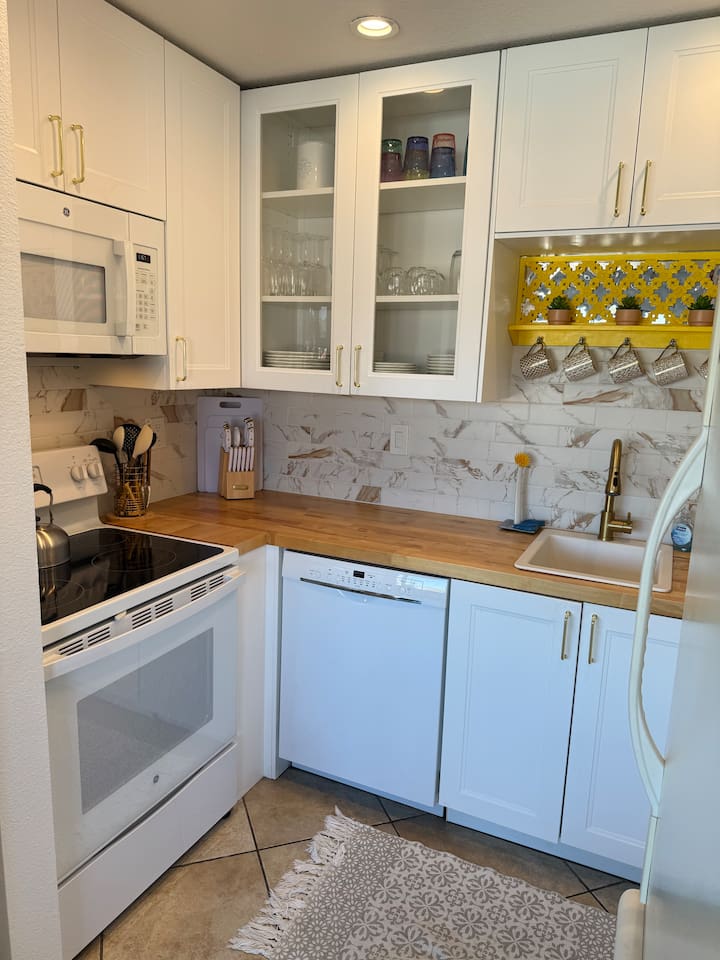 -This newly remodeled, top-level end-unit in The Biarritz has floor-to-ceiling windows & mirrors throughout, creating an open feel with extensive views of The San Jacinto Mountains and The Coachella Valley -The living area includes a sectional couch & smartTV, with a connected dining area featuring a beautiful midcentury modern inspired table & chairs - Sliding glass doors take you out to the balcony, which extends for the entire length of the unit. Here you'll find a hanging pod swing, a bistro table with two dining chairs, and a couch with a coffee table, so you can enjoy the expansive views in whichever way you like - The kitchen has been artfully remodeled and is equipped with new appliances (including a dishwasher) so you can create whatever meals you're inspired to cook during your stay - We also have a brand new Keurig & microwave if that's (understandably) the extent of your cooking desires while you're on vacation - The bedroom features a new King size bed, walk-in closet, floor-to-ceiling mirrors, a smartTV, and a gorgeous view of the San Jacinto mountains to wake up to in the morning (or afternoon) - The ensuite bathroom has been fully remodeled and features a large tiled shower with brass fixtures - The Biarritz has a large pool, two jacuzzis, and tennis courts available for your use.