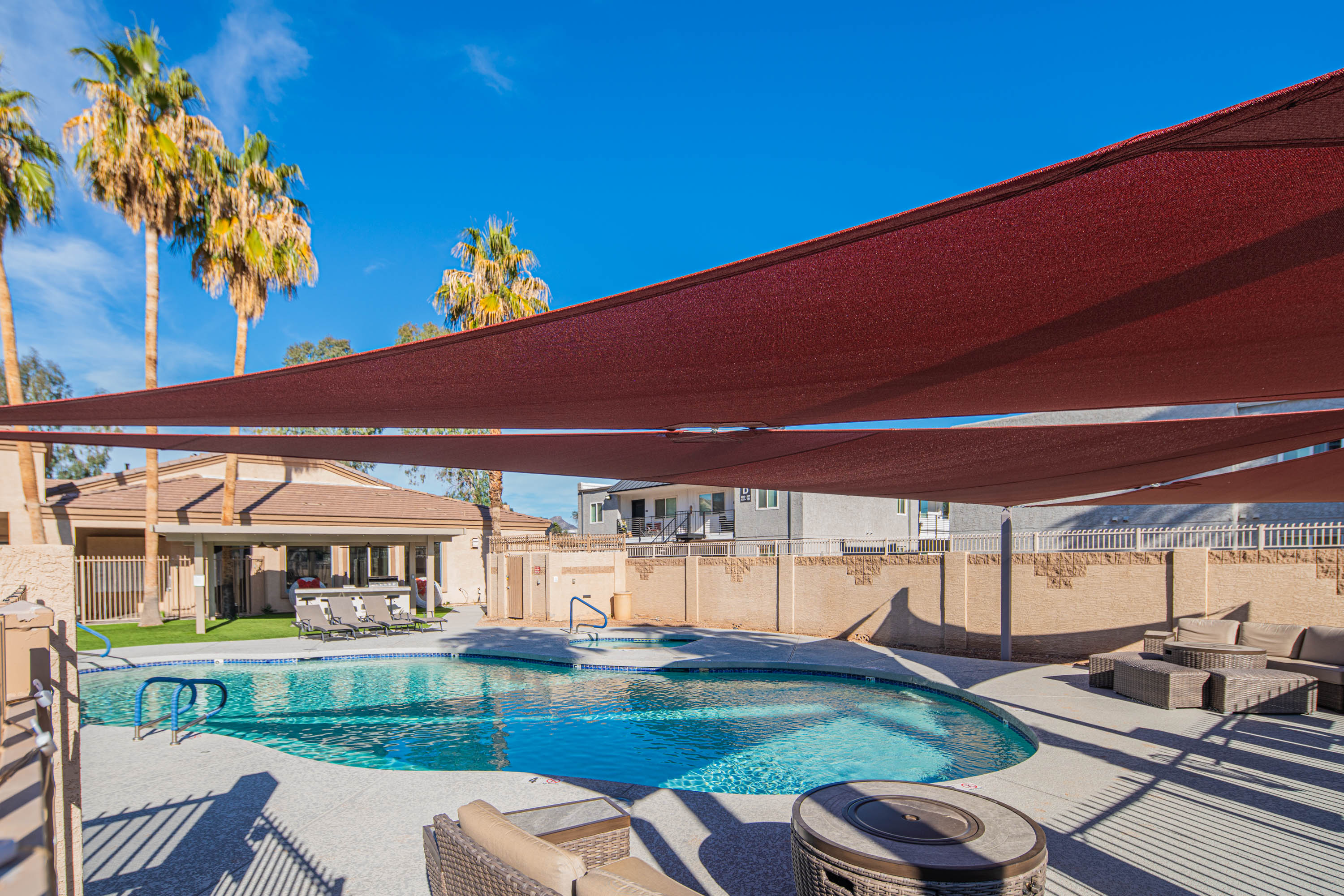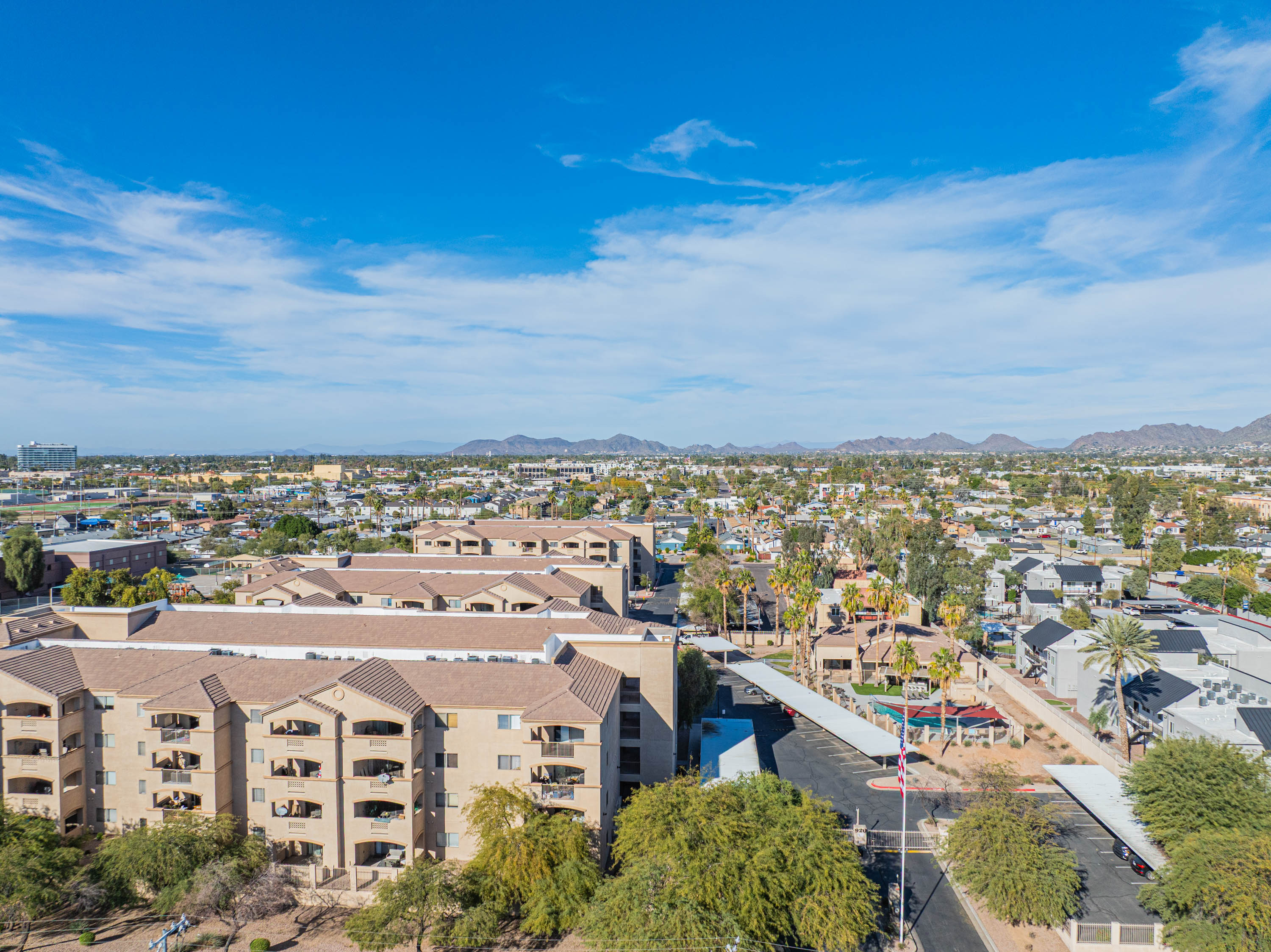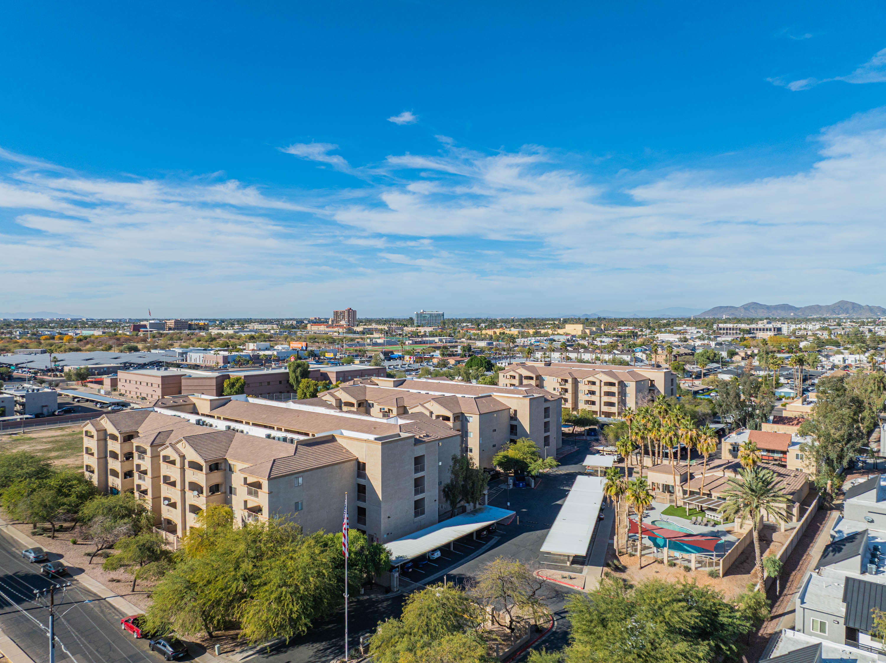 Great midtown gated location which is easy to get to everything within a few miles or less than a mil walk to the light rail and get around easily. Dog park and Indian Steele Park just across the street has grass hills and ponds great to walk or hang out and watch the ducks.